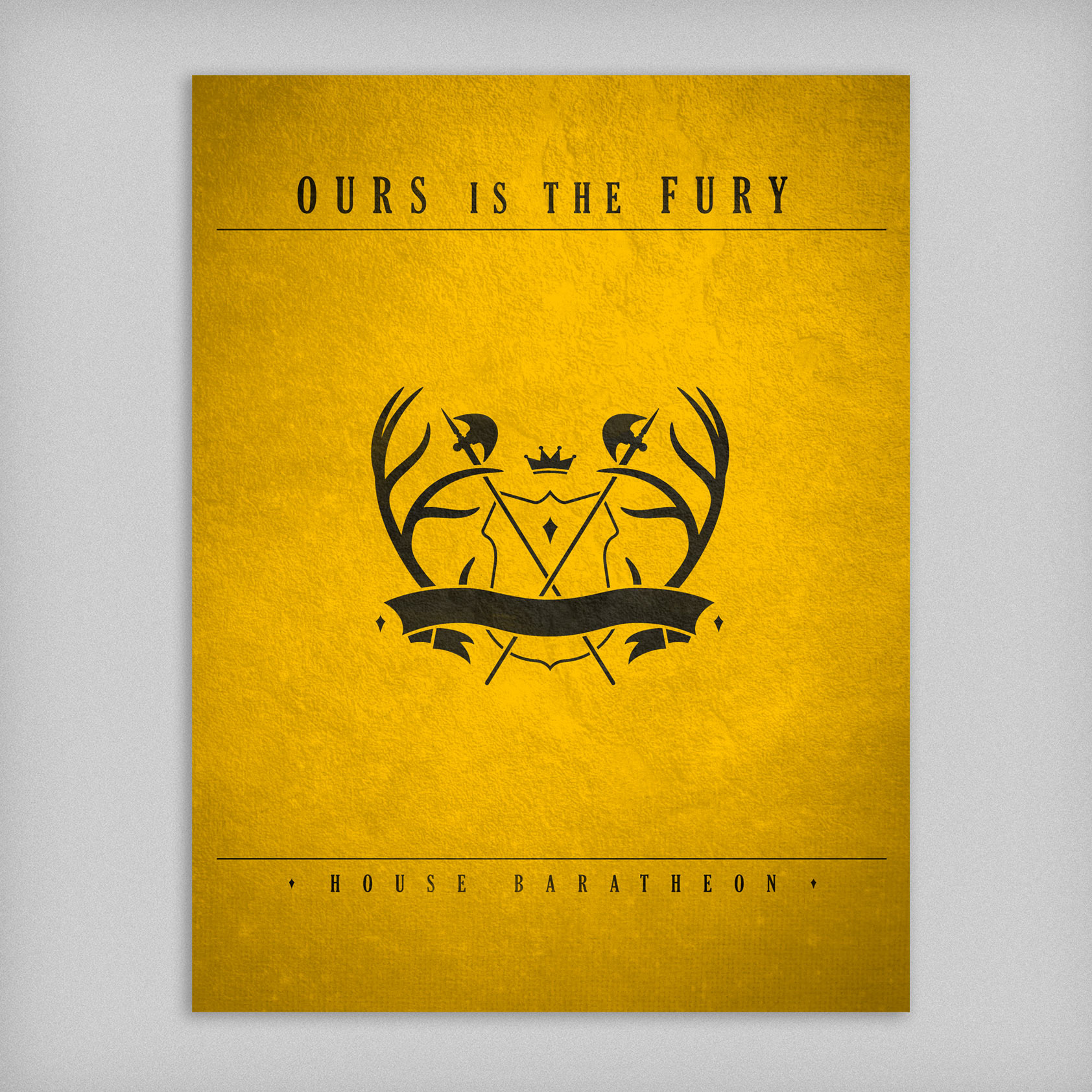 When looking at the amazing crest designs of English Premiership teams I decided to redesign the Game Of Thrones house emblems in a similar fashion , sticking to a minimalism theme. I have redesigned 5 out of the many houses from the famous series/books.